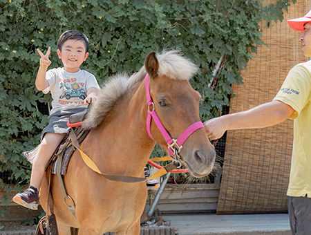 ポニーの乗馬体験は移動動物園で大人気です。