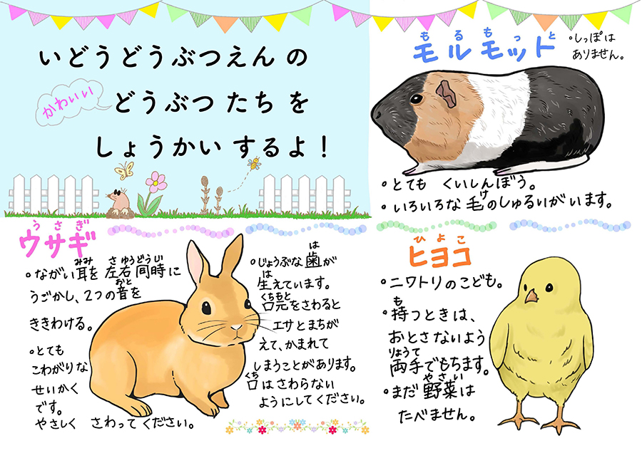 かわいいアニマルたちとのお約束。ふれあい方のルールをやさしく解説しています