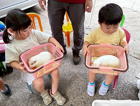 こちらではかわいい動物たちを抱っこチャレンジ。